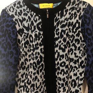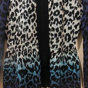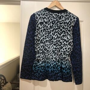 Lovely St John Ombré Wool Blend Leopard Peplum Cardigan Sweater