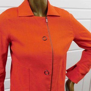 Orange linen blend jacket with dark silver grommet detail and hardware.