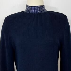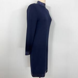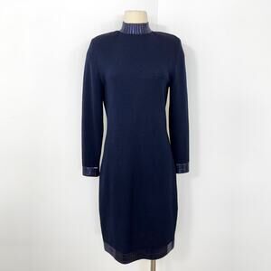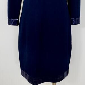 St. John Paillette Embellished Long Sleeve High Neck Sweater Knit Dress Navy 6