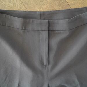 Elevate your wardrobe with these designer St. John pants in a beautiful dark green color. The wide-leg trousers are made from a lightweight woven wool and elastane fabric blend, offering both comfort and stretch. The flat front, zip front and button closure create a classic, minimalist look that is perfect for any occasion. Dry clean only.
