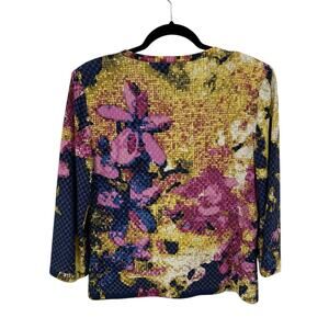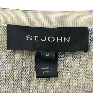 St. John Pink Yellow Floral Print Button Up Cardigan Sweater Womens Medium