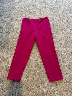 Vibrant fuchsia St. John straight leg pants. Clean lines and tailored silhouette. Smooth fabric with a polished finish. Versatile for work or events.