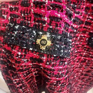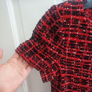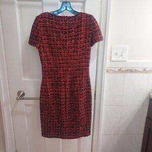 St. John Red Black Silver Short Sleeve Tweed Dress