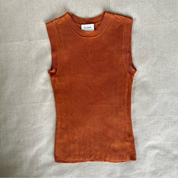 NWOT St. John Rib Knit Crewneck Shell in orange brown color.
