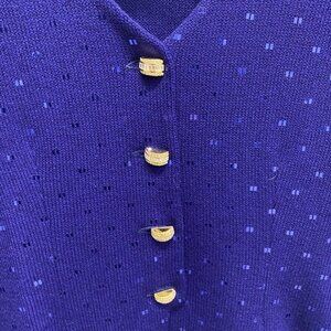 St. John Royal Blue w/Sequins & Gold Buttons Cardigan