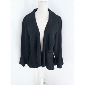 St. John Ruffle Black Waterfall Drape Wool Knit Open Cardigan Sweater 16 XL