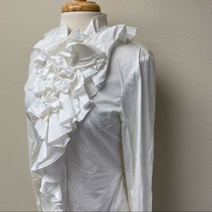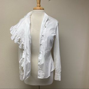 St. John Ruffle Button-down Blouse in White 6