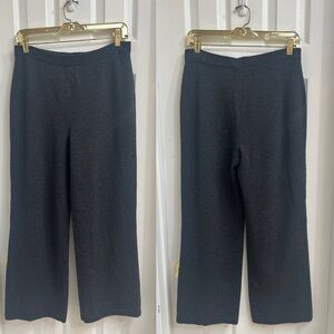 Excellent extremely gently worn, no flaws. A classic easy dressing staple. Simple pull on Santana knit wide leg trousers in charcoal gray. Always happy to answer questions