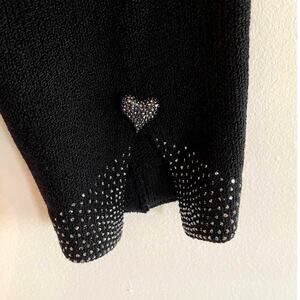 St. John Santana Knit Evening Jacket Black Crystal Heart Buttons Size 14