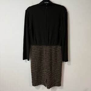 St. John Santana Knit Long Sleeve Dress Sweater Turtleneck Textured Green 10