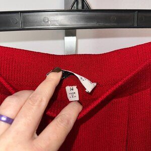 St. John Santana Knit Pants Red Pull On Pockets Wool Blend Sz 14 Straight Leg