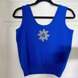 St. John Santana Knit Royal Blue Gold Studded Sleeveless Shell Tank Top Sz S