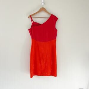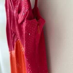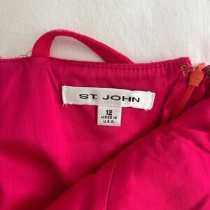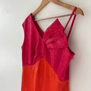 St. John Santana Knit Sequin Shimmer Orange and Pink Bow Cocktail Mini Dress, Size 12