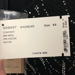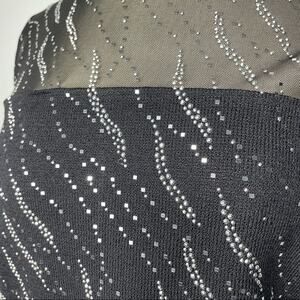 New with tags, made in USA, black sleeveless tank, sheer yoke, hidden back zip, silver sequin embellishment throughout abstract design, extra beading included.