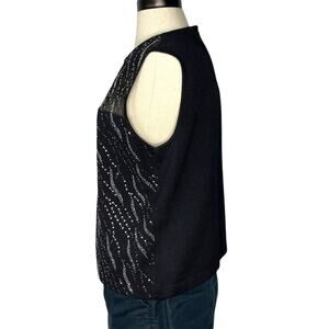 St John Santana Knit Sequin Sleeveless Blouse Black Silver NWT M $585