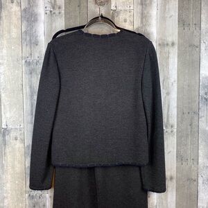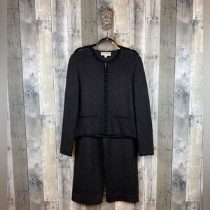 St John Santana Knit Short Sleeve Jack and Pants Set in Dark Grey Heather Size 4