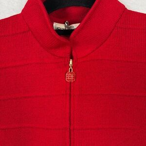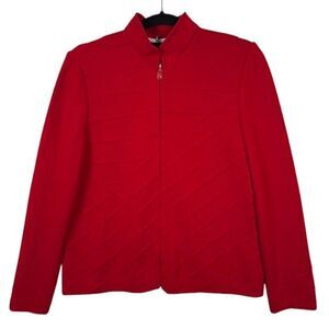 St. John Santana Knit Textured Wool Blend Sweater Zip Front Mandarin Collar Size 6. Excellent condition. See photos for details and unstretched measurements. Shop my closet for more new Designer Apparel and quality preowned apparel and bundle multiple items for discounts and one shipping fee!