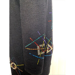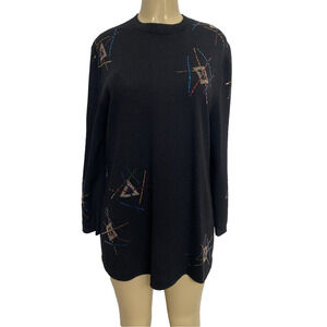 St John Santana Knit Top Long Sleeve Crew Neck Paillette Embellished Black 14 XL