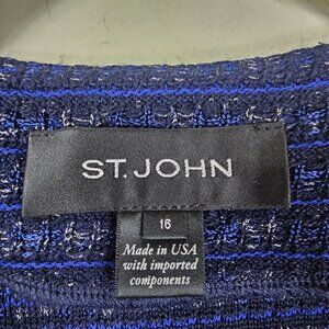 St. John Santana Knit Tweed Jacket Sz 16 Leather Pockets Office Formal Old Money