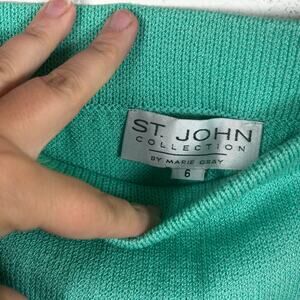 Keywords: St. John knit skirt, sea green skirt, size 6 skirt, designer pencil skirt, St. John collection, classic knitwear, luxury skirt, workwear, timeless fashion, elegant women’s skirt, structured knit skirt.