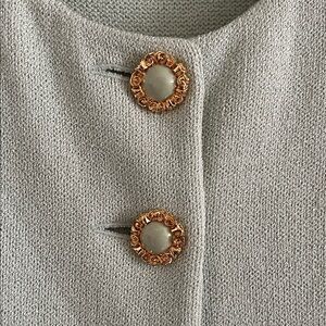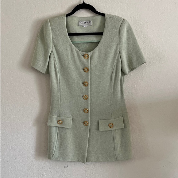 Chic mint knit top by St. John. Features a classic round neckline.