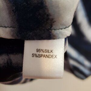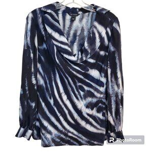 St. John Silk Blouse Size 4 tie Dye Cowl Neck Black Blue White Zebra Animal