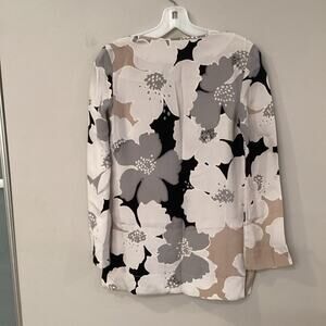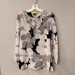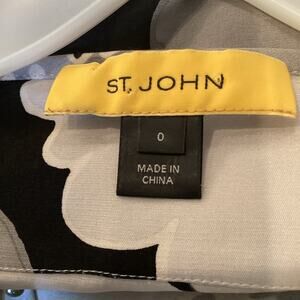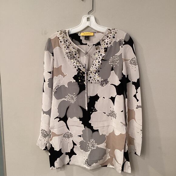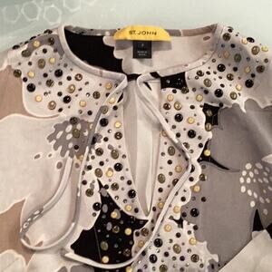 St. John Silk Blouse in Size 0 with Flowers and Beads around V-neck.