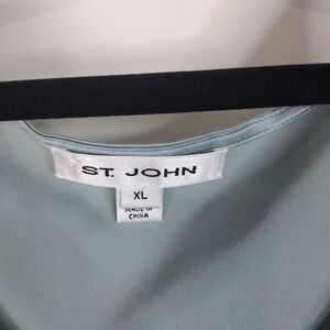 The St John Silk Shell Cami Tank Top in powder blue is a stylish and elegant addition to any woman's wardrobe. Made from luxurious silk material, this sleeveless top features a round neckline and a pullover closure for easy wear. Perfect for any occasion, this top is designed to fit a size XL with a classic and designer theme. Imported from China, this top is sure to make a statement with its chic and sophisticated style. Good preowned condition needs to be dry cleaned. There's a small spot on the front and it smells like perfume. Has some snags on the back. Measurements are in the photos
