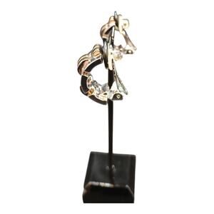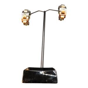 St John Silver & Gold Tone Half Loop Buckle Clip On Statement Earrings