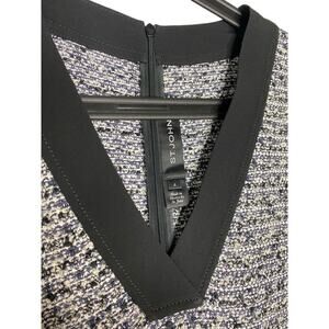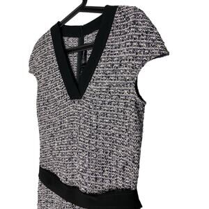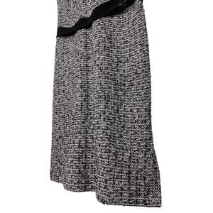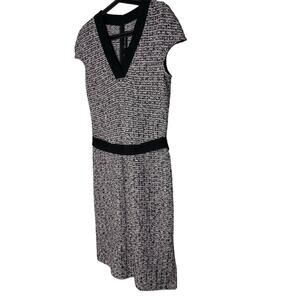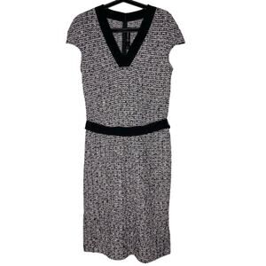 St John Size 4 Dress Boucle Tweed Wool Blend Belted Midi Cap Sleeve V-neck Black