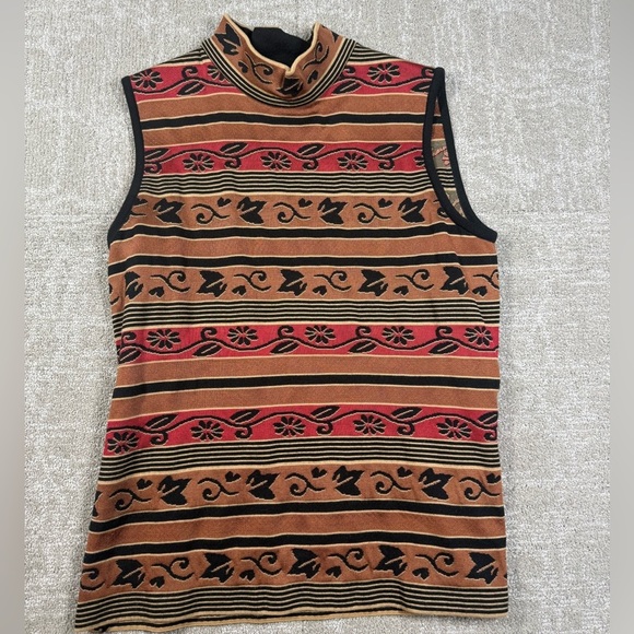 St. John Sleeveless High Neck Fall Printed Sweater Womens Size Medium