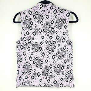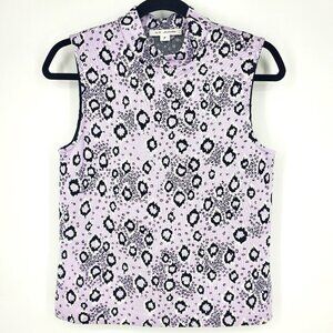 St. John Sleeveless Mock Neck Leopard Print Knit Top Lilac/Black P/XS