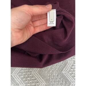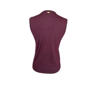 A deep purple hue and artful center stitching define this shell knit from a supersoft wool-and-silk blend that layers beautifully and looks lovely on its own. It features a sleeveless cut, a wool and silk blend, and a crew neckline. It comes in a size small in a deep purple/plum, and is new with tags!