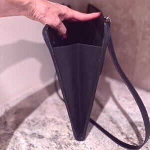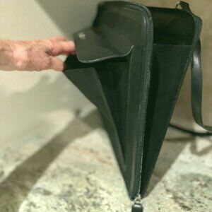 Black leather and fabric with silver hardware and St. John Logo