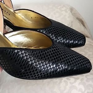 St John Sling back heels Black Satin with Sparkling Paillettes size. 9.5B