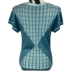 St. John Small Sweater Top Cap Sleeve Round Neck Stretch Julep/Patina Teal Green