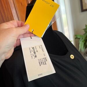 St. John Spa Black Jersey Button Roll Tab Sleeve Blouson Dress NWT $595