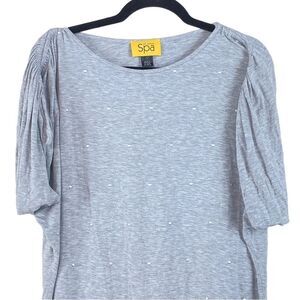 St John Spa Gray Heather Embellished Oversized Tunic Top Mini Dress Sz P/XS in EUC with no visible flaws