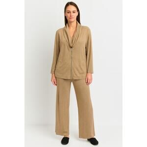 St. John Spa Loungewear Jersey Pant and Cowl Neck Jacket in Beige | Size Medium