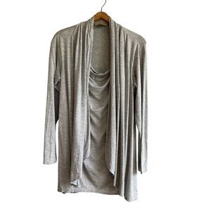 St. John Spa Womens Jersey Knit Open Waterfall Cardigan Size S Twofer Gray