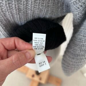 *No flaws - gorgeous cashmere sweater- please note size tag is cut out but measures between a Small and Medium. Asymmetrical cut - very cool design - Black and Gray Colorblock