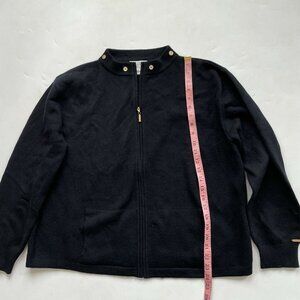 St. John Sport Black 100% Cashmere Zipper Sweater Gold Buttons XL