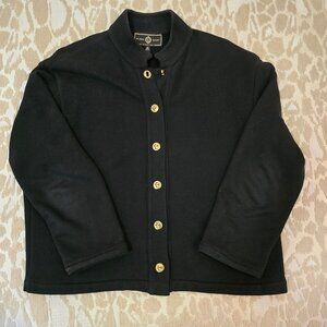 St. John Sport Black Cotton Sweater Gold Twist lock Buttons Mandarin Collar Sz M