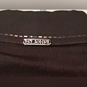 NWOT - Black Label St. John Sport by Marie Gray black denim jacket cotton blend, a timeless piece featuring intricate lion-embellished buttons and shimmering sequins that add elegance to both the front and back. Perfect for a relaxed yet polished look, this button-up jacket offers a flattering fit. Its measurements include an armpit-to-armpit width of 20 inches, a length of 23 inches, and an arm length of 22 inches. Sized small, this versatile jacket effortlessly combines comfort and sophisticated style