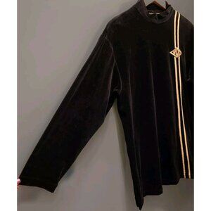 St John Sport Black Gold Velour Long Sleeve Mock Neck Top Sz S