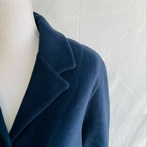 St. John Sport Blazer Jacket Notched Collar Navy Blue Embroider Long Sleeve Cotton Preppy Size Medium Fall Winter Spring Layer Layers Layering Wardrobe Staple Work Office Casual