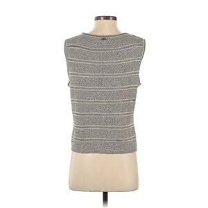 St. John Sport Brown Metallic Striped Sleeveless Crochet Sweater Vest Small