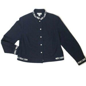 St. John Sport By Marie Gray Navy Jacket Embroidered Chain Accent Womens M