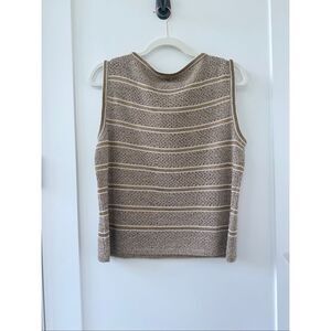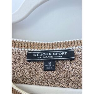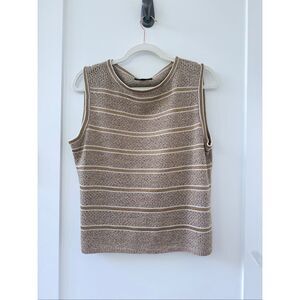 St. John Sport By Marie Gray Striped Knit Sleeveless Tank Top Taupe Women's Medium