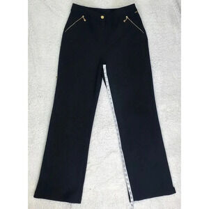 These chic black pants from St John Sport by Marie Grey. feature a flat front, zipper, button closures, and pockets.These lovely pants are preloved and in great condition with minor fraying that is only noticeable when looking very closely otherwise is excellent condition see picture for measurements.